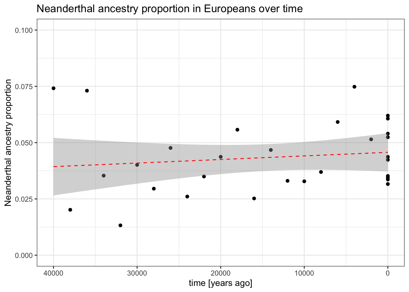 There used to be a lot of controversy about the question of whether or not did Neanderthal ancestry proportion in Europeans decline or not over the past 40 thousand years (see Figure 1 in this paper and Figure 2 in this paper).