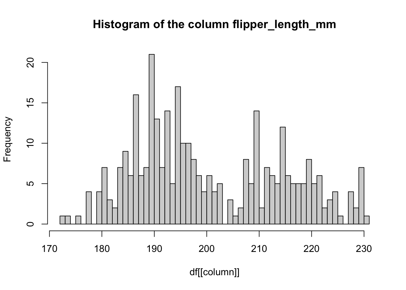 dev.off() # this closes the PDFIf everything works correctly, look at the penguins_hist.pdf file you just created! It was all done in a fully automated way! A hugely important thing for reproducibility.